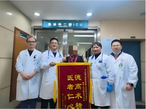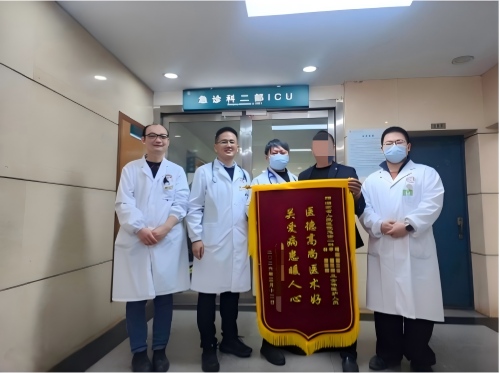 另一名康复出院患者的家属也专程赶来,将锦旗送到了林茜医生及医护团队的手中。“这里虽然是ICU,但一点都不冰冷。”家属感激地说道。在患者治疗期间,由于家属无法时刻陪护,心中充满焦虑。急诊ICU的医护团队在做好治疗的同时,主动承担起“临时家人”的角色,不仅每天通过电话向家属耐心解释病情进展,还在生活上给予患者关怀,提供心理疏导,在患者情绪低落时,给予鼓励。这些细节,患者和家属都看在了眼里,记在了心上。