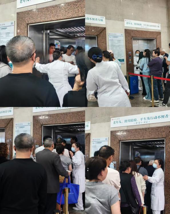 4月26日,清晨7时30分。当大多数人还在上班途中时,我院天心阁门诊大厅已是人来人往。由于扶梯封闭施工,这座八层大楼的垂直交通重担,全压在了仅有的3台直梯上,运力不足平日的三分之一。看着周一早高峰不断涌入的人流,门诊部主任的心不由得揪紧了。